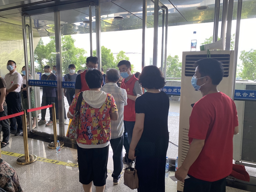 6月11日,兴泰担保集团党员先锋志愿服务队到蜀山区奥体方舱新冠疫苗接种点开展志愿服务,助力疫苗接种工作平稳高效推进。