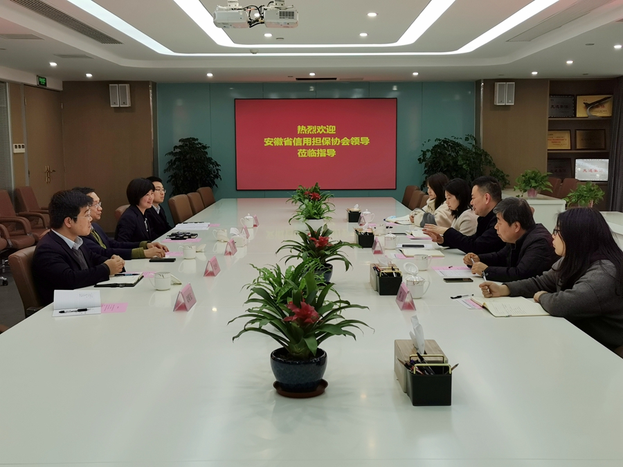 陈锐对省担协一行表示欢迎,并介绍了兴泰担保集团的经营发展、业务开展和风险管理情况,其中重点介绍了合肥市政府性融资担保体系建设情况和业务转型方面的创新思路。胡利介绍了省担协2020年度主要工作情况,并对下一步工作计划进行了沟通。随后,双方就目前区域担保行业发展和协会建设进行了深入交流。