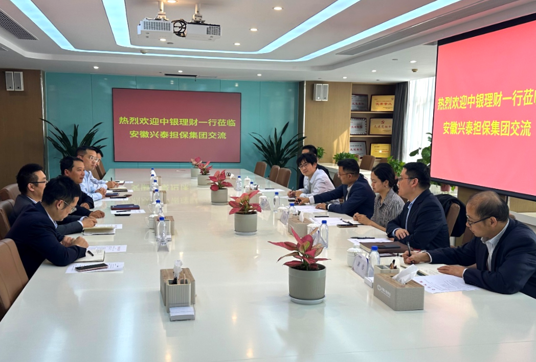 近日,中银理财跨境产品部副总经理陈思玉一行,到访安徽省兴泰融资担保集团有限公司(以下简称“安徽兴泰担保”)开展座谈交流。安徽兴泰担保党委书记、总经理戚威及相关部门负责人参加座谈。
