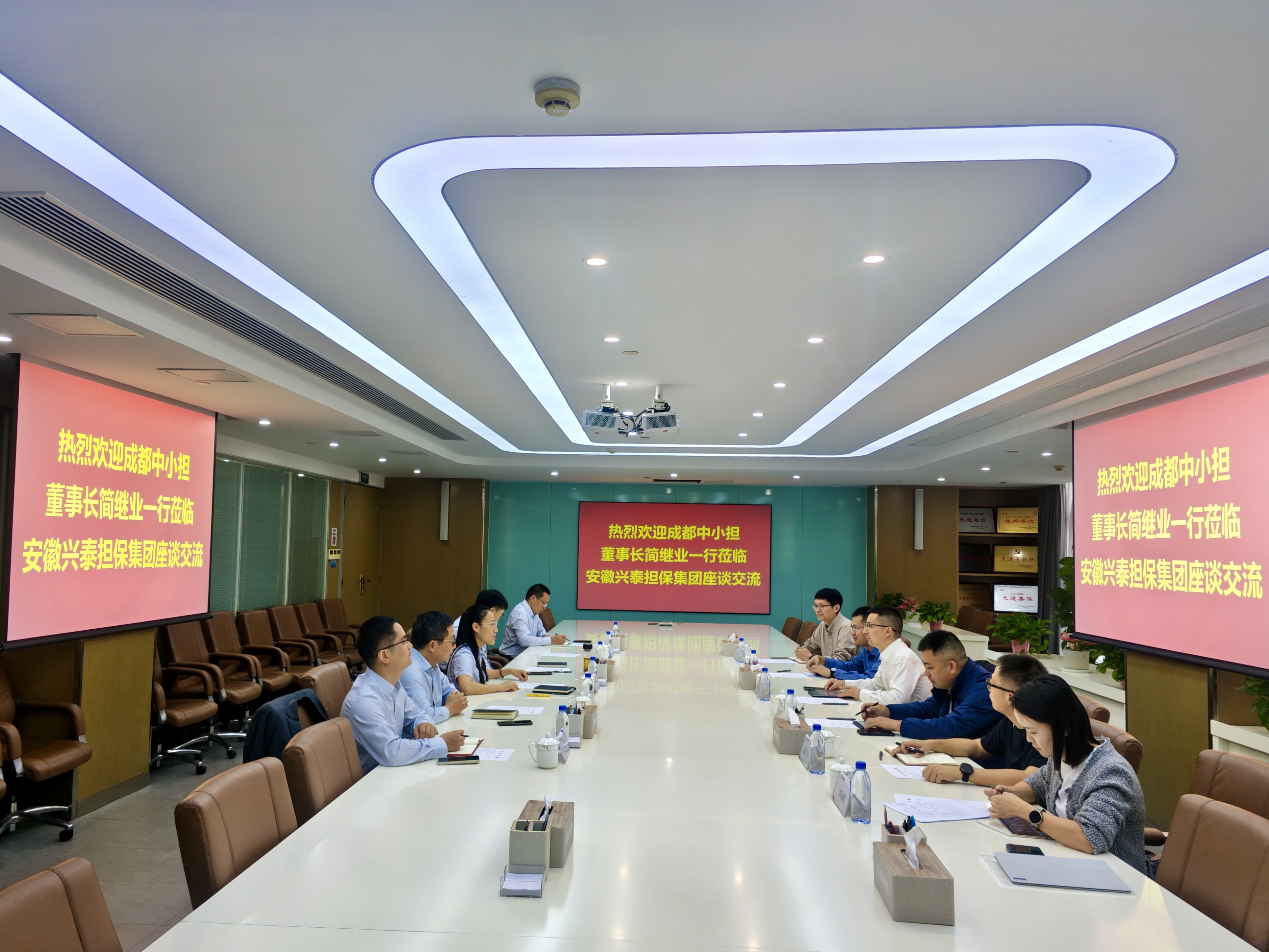 近日,成都产融服务控股集团副总经理,成都中小企业融资担保有限责任公司董事长、总经理简继业一行到访安徽省兴泰融资担保集团有限公司(以下简称“安徽兴泰担保”)开展业务交流。安徽兴泰担保党委委员、副总经理张晓敏、许敬银及相关部门负责人参与座谈。