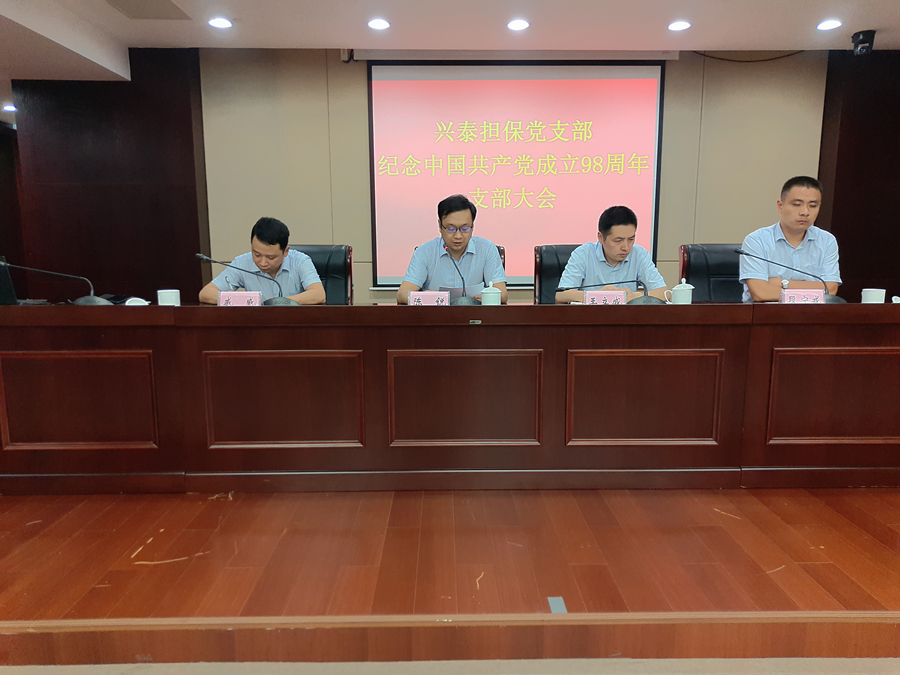 7月11日,兴泰担保党支部召开支部大会,纪念中国共产党成立98周年。兴泰控股党委委员、副总裁,兴泰担保党支部书记、董事长陈锐及支部班子成员出席大会,支部全体党员、入党积极分子、递交入党申请书员工参加大会。