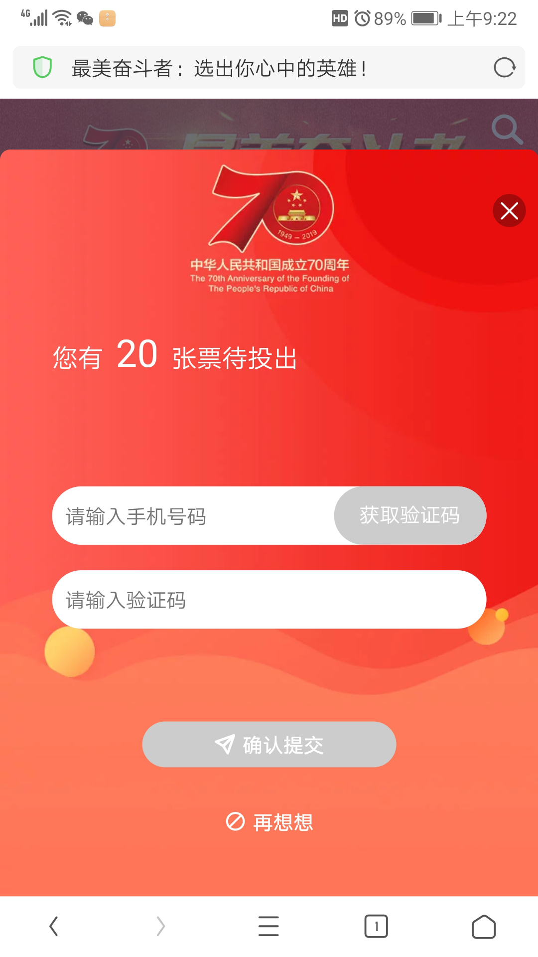 3.点击投票页面后,确认提交人选。手机验证后即可完成投票。