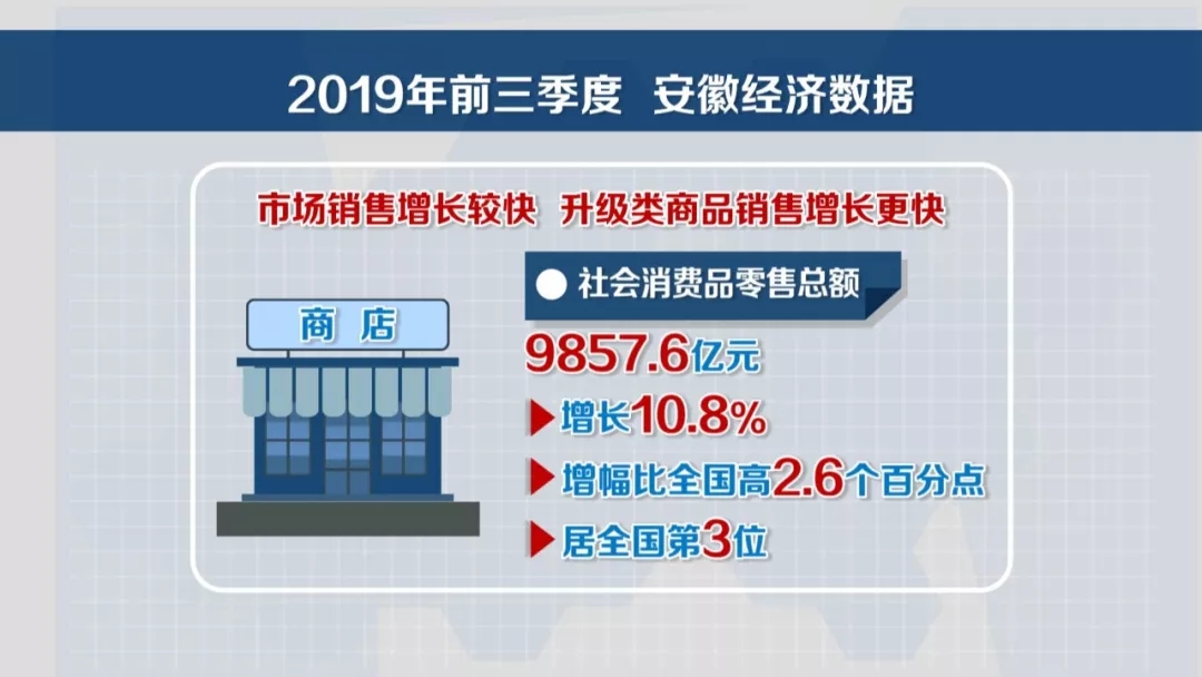 前三季度,全省社会消费品零售总额9857.6亿元,增长10.8%,增幅比全国高2.6个百分点,居全国第3位。