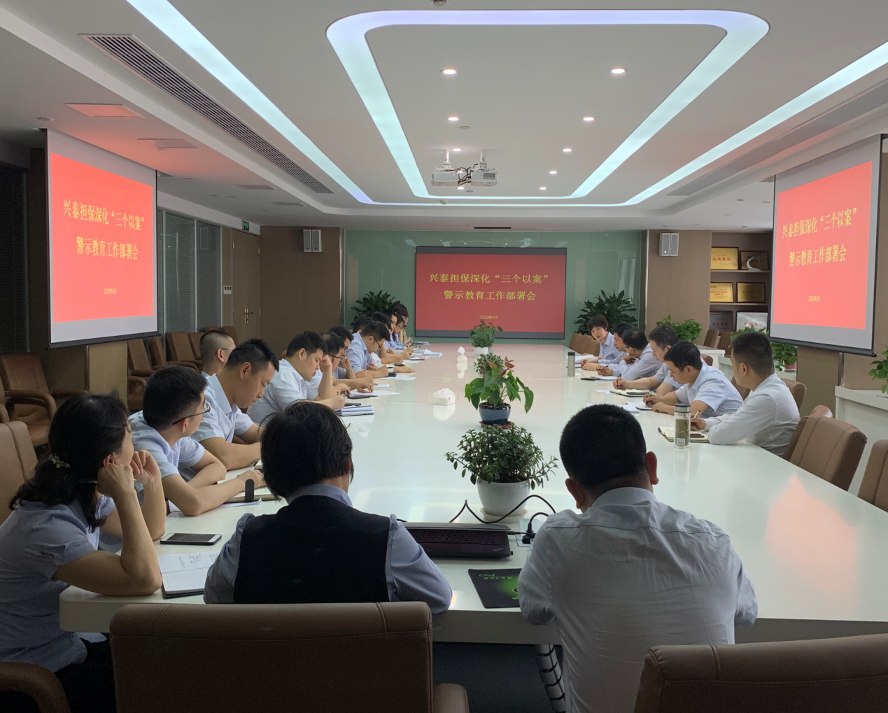 5月11日,合肥市兴泰融资担保集团有限公司(以下简称“兴泰担保”)召开深化“三个以案”警示教育工作部署会议,传达兴泰控股深化“三个以案”警示教育工作方案,部署兴泰担保警示教育工作。
