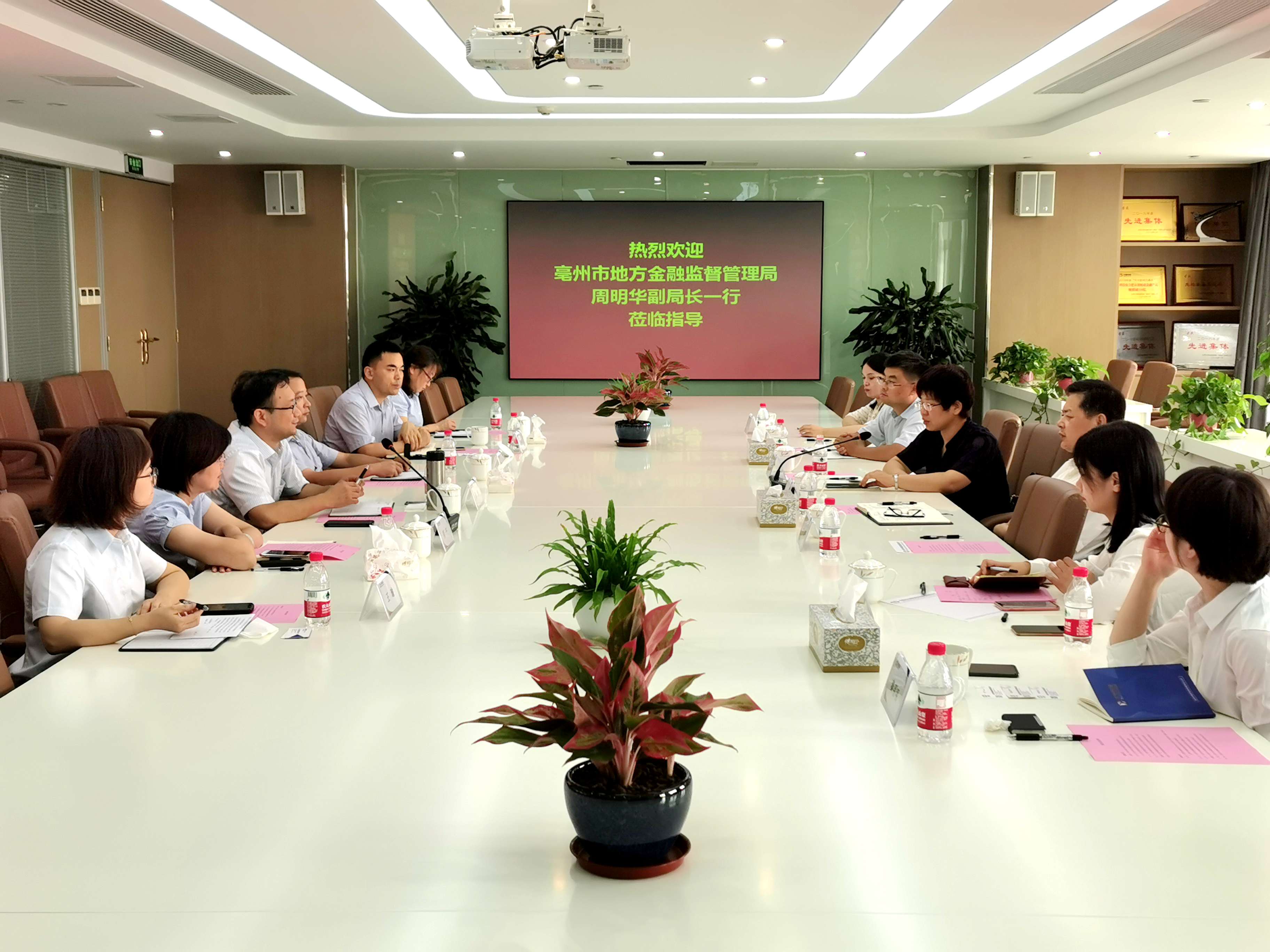 8月26日,亳州市地方金融监督管理局副局长周明华,亳州市融资担保有限责任公司总经理于敏一行到兴泰担保开展调研交流。兴泰控股集团党委委员、副总裁,兴泰担保集团董事长陈锐及相关人员参加交流座谈会。