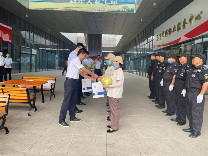活动中,二支部还慰问了在高温天气从事室外工作的要素大市场物业一线员工,对他们的辛苦付出表示敬意,并送去慰问品。