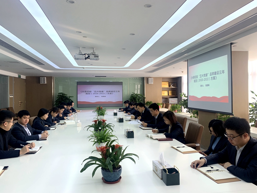 会上,首先由支部宣传委员带领学习了《兴泰控股“五兴党建”品牌建设三年规划(2020-2022)方案》,详细介绍“五兴党建”品牌内涵和建设规划。