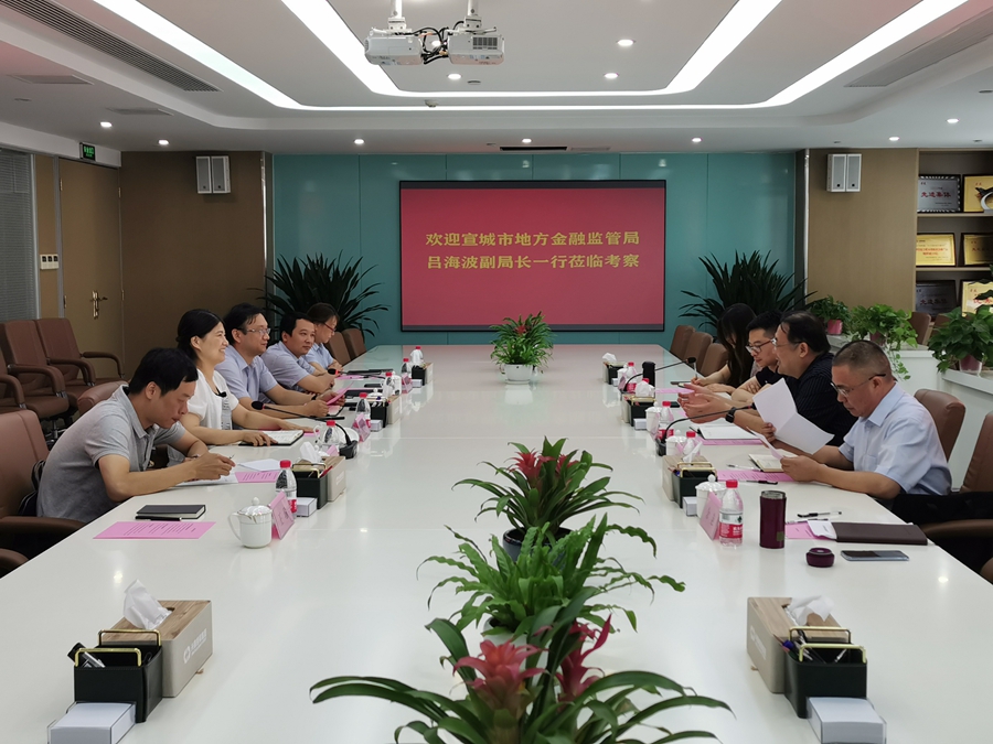 7月20日,宣城市地方金融监管局党组成员、副局长吕海波一行到兴泰担保集团调研。合肥市地方金融监管局党组成员、副局长唐风玲,兴泰控股集团党委委员、副总裁,兴泰担保集团董事长陈锐,宣城中小担保董事长邹宣宁及相关人员参加调研座谈会。