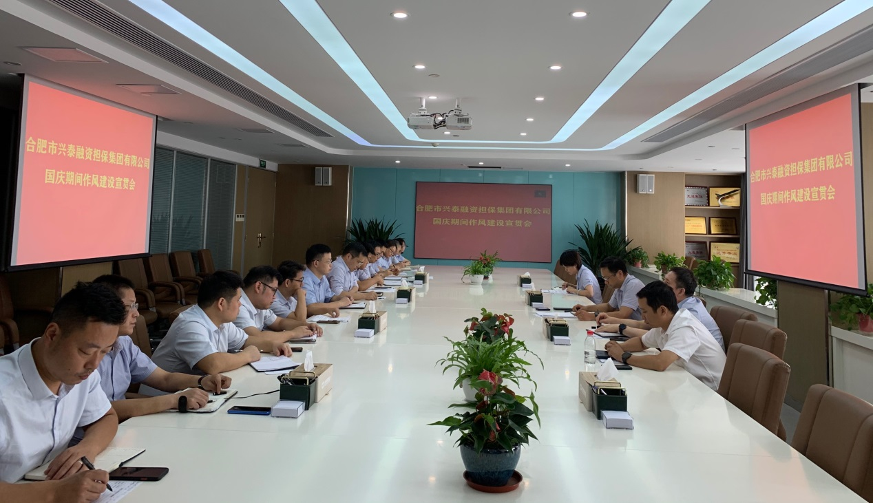 9月26日,为深入贯彻落实市纪委监委驻兴泰控股纪检监察组工作要求,加强节日期间作风建设,兴泰担保集团召开国庆期间作风建设工作宣贯会。